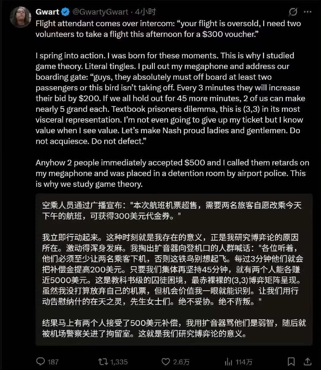 有个asd黑人男性叫Darius,他这辈子最痴迷的东西就是火车,他15岁就天天跑去看地铁,知道所有路线和准确到站时间。那些成年人还给他演示怎么开,他一看就会,后来经常找他代班,他开的时候都绝对准点。但他16岁被抓住了,法院算他felony,在美国如果有felony记录就不能从事任何交通运输操作员之类的工作。但他还是喜欢开火车,经常免费去给人代开,一直被抓一直被判刑,他人生一半的时间都在为这件事坐牢上度过了。中间还有国土安全的人来向他咨询火车安全的问题,咨询完还是让他继续坐牢。后来法院觉得他精神有问题判终身关到最严格的精神病院,尽管精神科医师的专业意见是他完全不危险,建议关到普通设施,法院也没有采纳。所以他目前还是跟所有最危险的犯人关在限制最高的精神病院里。所有听过这个故事的人都知道他如果是白人人生绝对大不同,前途亮得睡不着