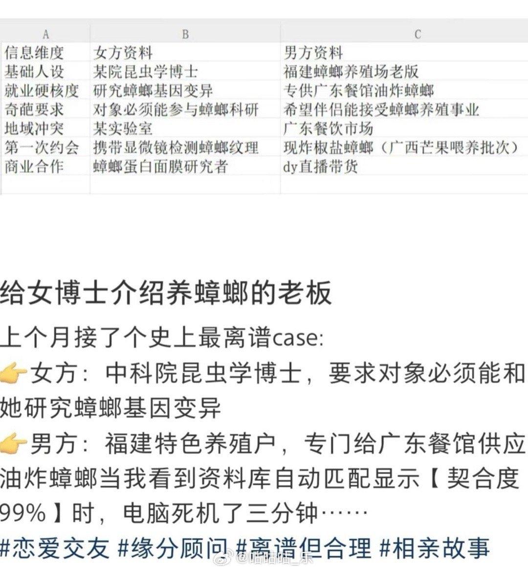 again小红书为什么有这么多热乎的刚编故事,女博士+蟑螂+直播带货这种一看就是炒话题度的东西。。。还女(注意这个女)博士要求对方必须能参加蟑螂科研,恶心程度不亚于看到女法医就问人家找另一半能不能接受身上有尸臭味