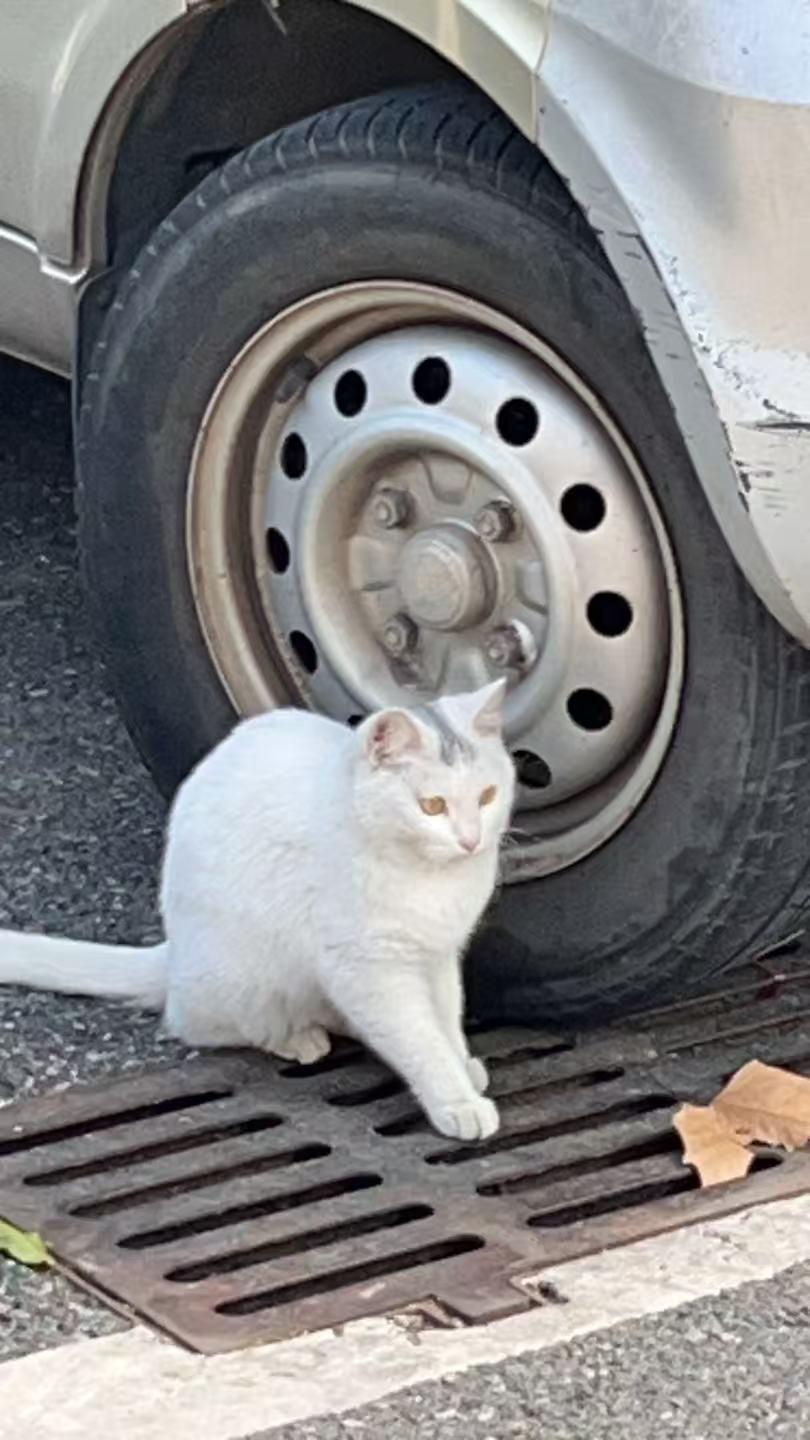 杭州有朋友可以幫一下這隻頭頂有幾把的小白貓嗎。